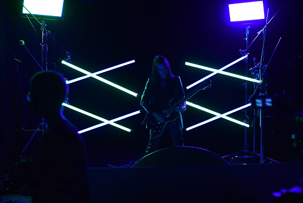The scene where the band plays amongst technological wreckage and neon tubes, or the “rubble island”, as we called it, was another production design challenge that Producer Steve Brown was tasked with constructing. While Kincaid and Koranda also helped collect items, Brown led the charge by filling up a truck with straight-from-the-junkyard pieces, including car hoods, industrial tubing, and, honestly, some stuff we had no idea what it was, but it looked the part!